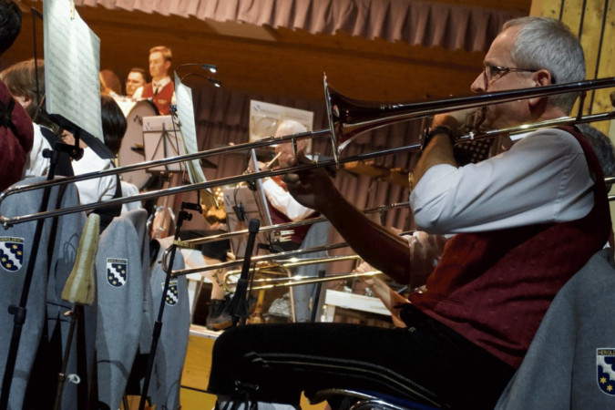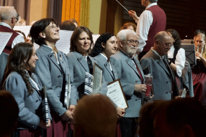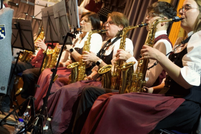 Im zweiten Teil folgte der Konzertmarsch „Neue Welt“ und die Polka „Ehrenwert“ sowie moderne Klänge mit der Ballade „The Story“, dem ABBA-Hit „Fernando“ und einem Medley aus dem James-Bond-Klassiker „Octopussy“.