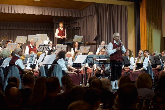 Am 22.02. fand unser Frühjahrskonzert in der Berghalle in Heroldstatt statt. Die musikalischen Leiter Kornelia Kiem, Franziska Pflügner und Volker Pflügner haben einmal mehr ein abwechslungsreiches Programm zusammengestellt Den Beginn machten die Blockflötenkinder, ehe die Jugendkapelle Platz auf der Bühne nehmen wird. Neben zwei Märschen von John Williams wurde der Klassiker „Nessaja“ von Peter Maffay vortragen. Die aktive Kapelle brachte neben dem Eröffnungswerk „Festive Overture“ die „Kilkenny-Rhapodie“, die orientalischen Fantasie „Arabesque“ und den „Der Barbier von Sevilla“ zu Gehör.