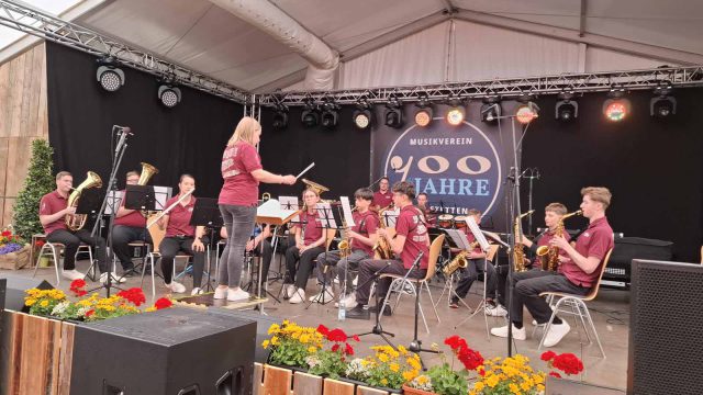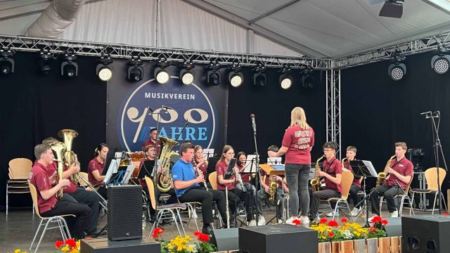 Am 24. und 25. Mai waren wir beim Jahrhundertfest des Musikvereins Feldstetten anlässlich seines 100-jährigen Jubiläums dabei. Unsere JUKA gestaltete den gemeinsamen JUKA-Nachmittag mit. Am Sonntag nahmen wir am großen Festumzug teil, bei dem pünktlich zum Start der Regen aufhörte. Danach spielten wir im Zelt beim Römersteintreffen.