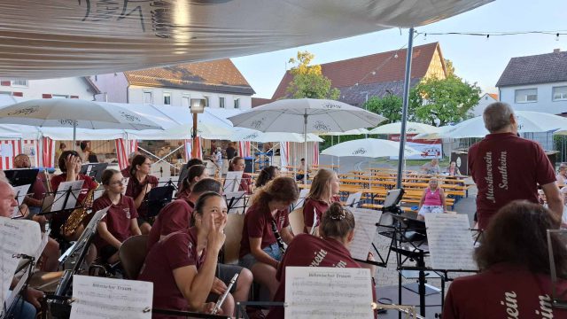 Sommerliche Stimmung, Musik und frische Luft – so lässt es sich feiern! Unsere Jugendkapelle war im Juli im Biergarten der BergBrauerei in Ehingen zu Gast. Das Wetter spielte zwar nicht ganz mit, sodass das Publikum eher klein ausfiel, doch davon ließen sich die Jungmusiker die Laune nicht verderben und spielten mit viel Freude auf. Nach dem Auftritt gab es für alle als kleine Belohnung Wurstsalat und Getränke!